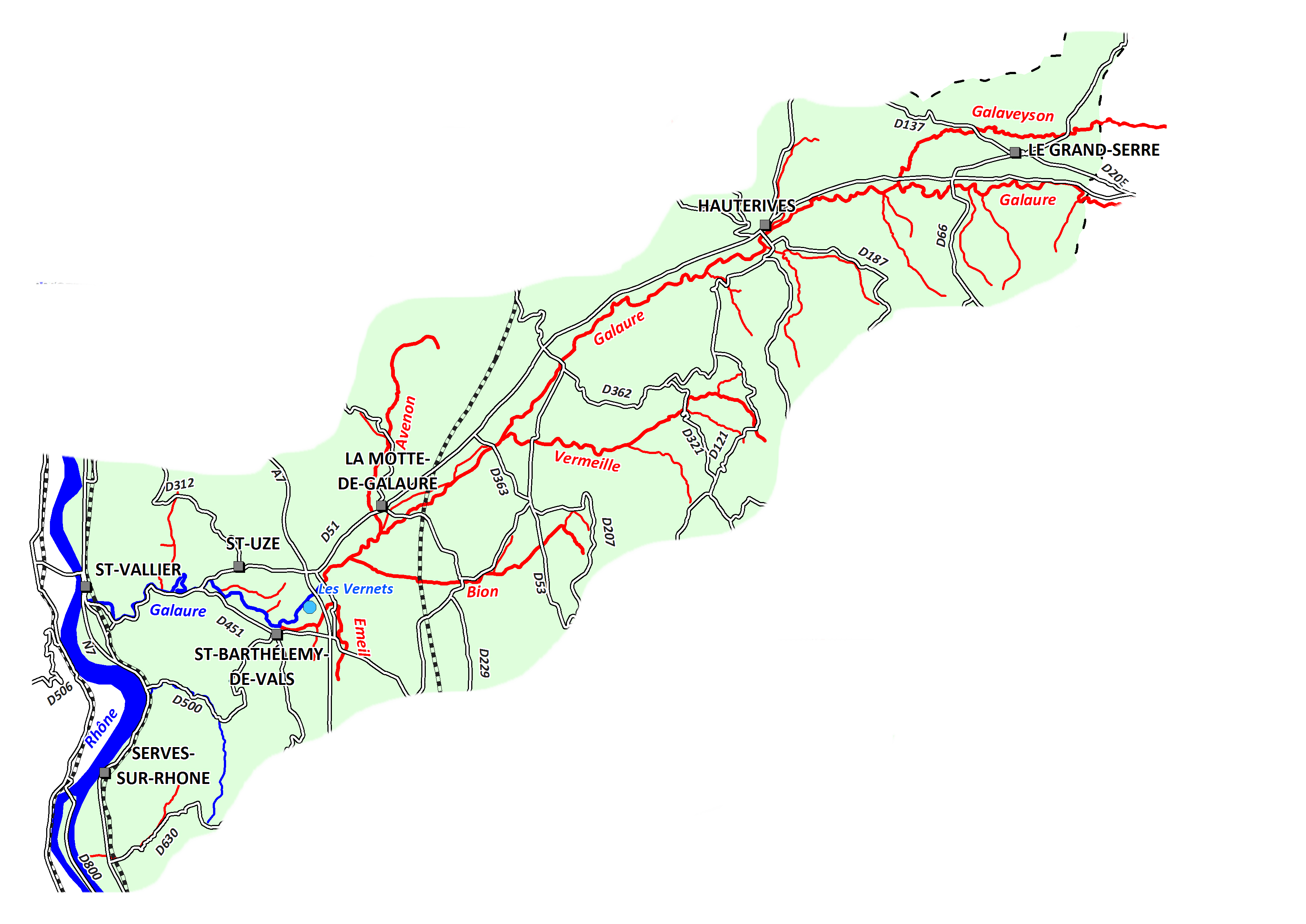Ce paysage vallonné et verdoyant cache de vrais trésors. A l’extrême nord du département, se situe un ensemble très particulier de rivières de plaine. Issues de résurgences de la nappe de la vallée, elles sont extrêmement riches et productives. Au programme donc, de superbes truites fario à croissance ultra rapide, atteignant des tailles considérables sur les Veuzes et l’Oron. La Galaure, le Bancel ou encore l’Herbasse, recèlent également de belles populations de salmonidés, notamment sur leurs parties amonts.